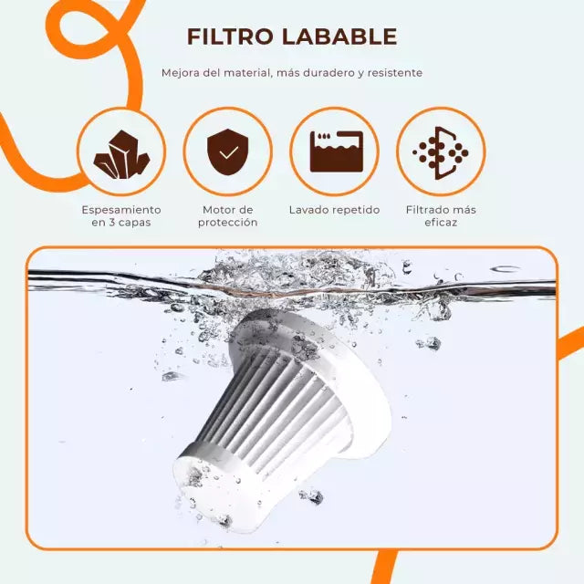 Sí, incluye boquillas especiales para aspirar diferentes superficies y un filtro lavable reutilizable .